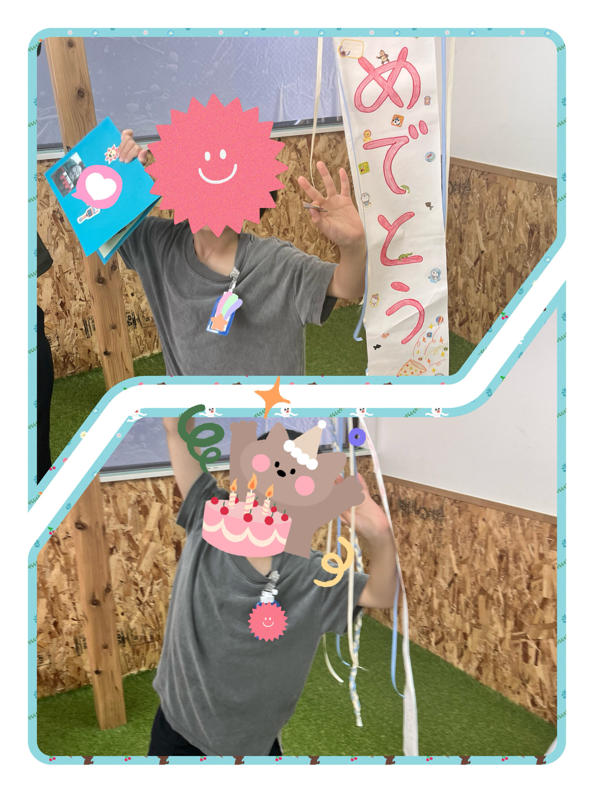 おやつの時間に、エブリイのお友だちと職員でお誕生日の歌を歌ってお祝いをしました🎉