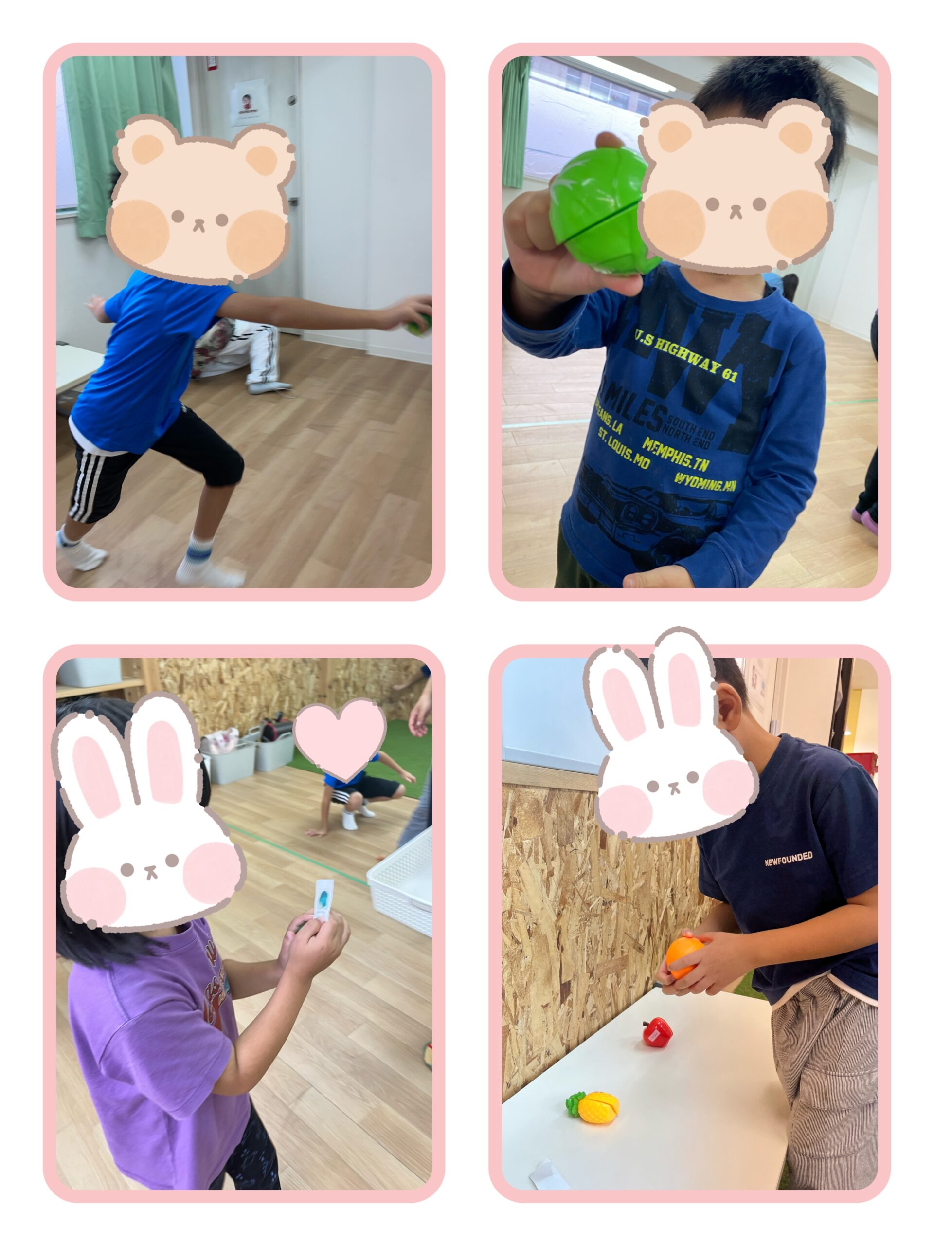 ゴール後、カードと持ってきた現物があっているかを確認し、お題を正しく読み取る力、お友達と協力する力を身に着けてもらいました✨
