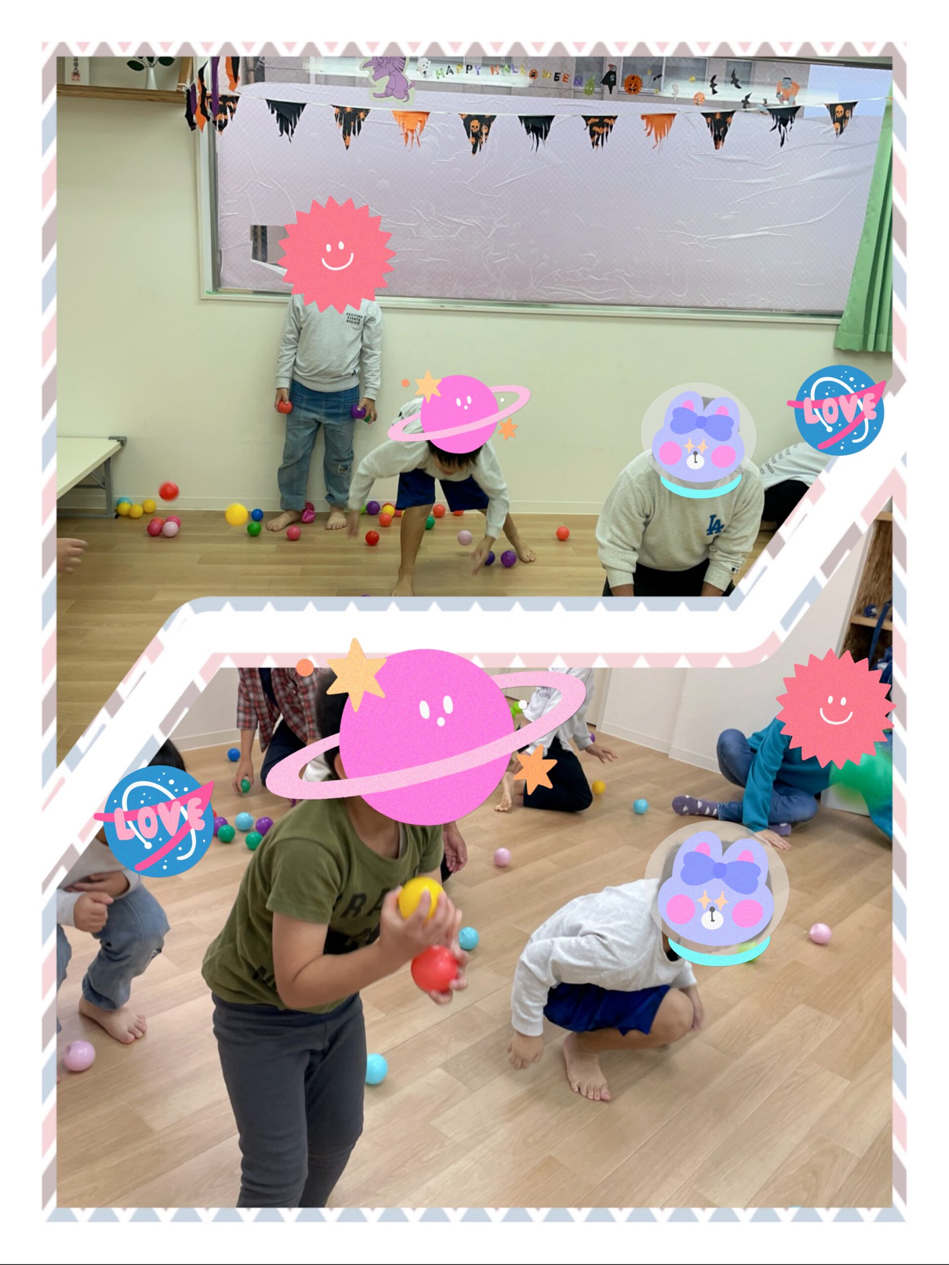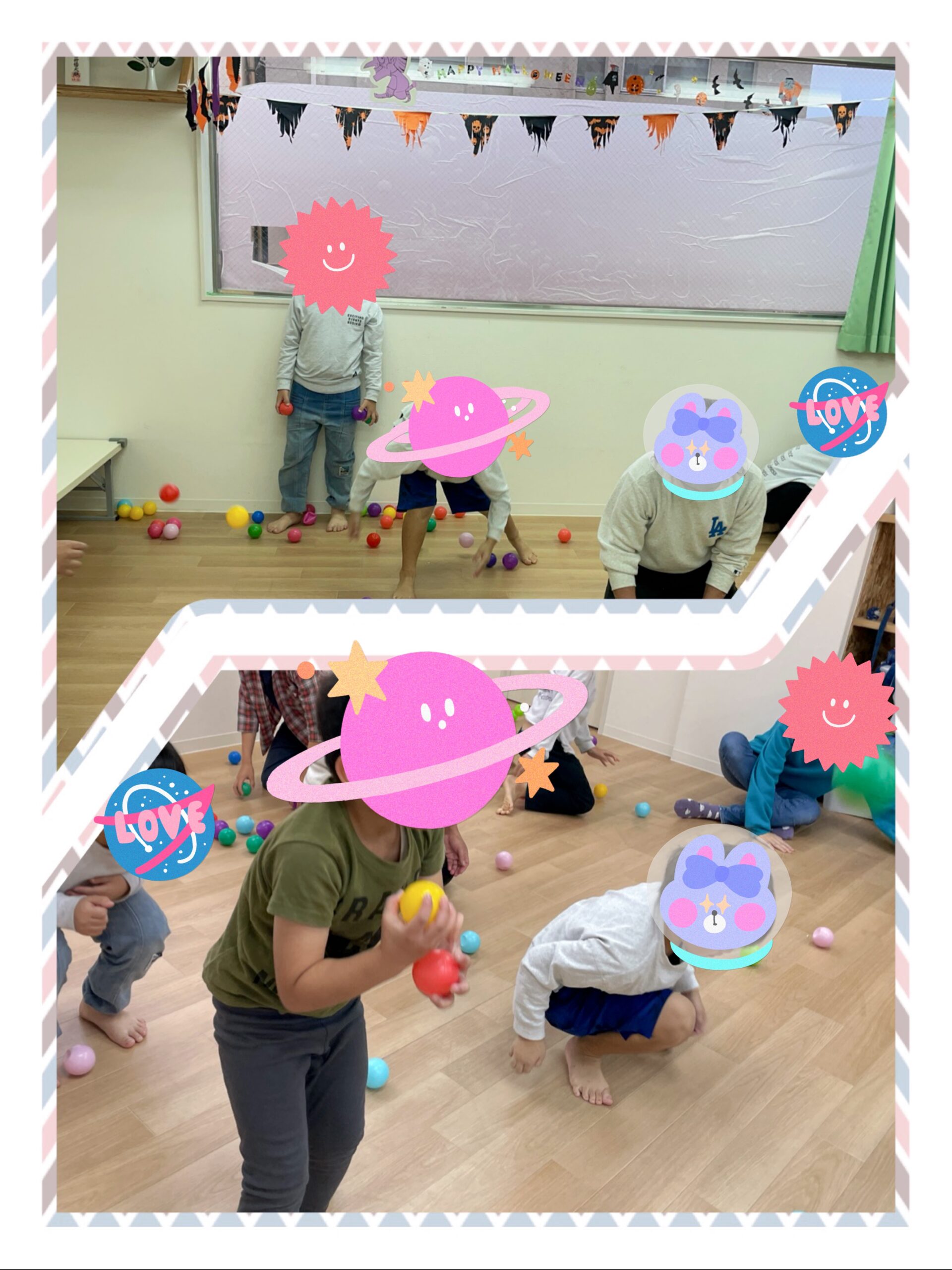 2チームに分かれてカラーボールを投げ合い、陣地内のボールが少ないチームの勝ちとなります!