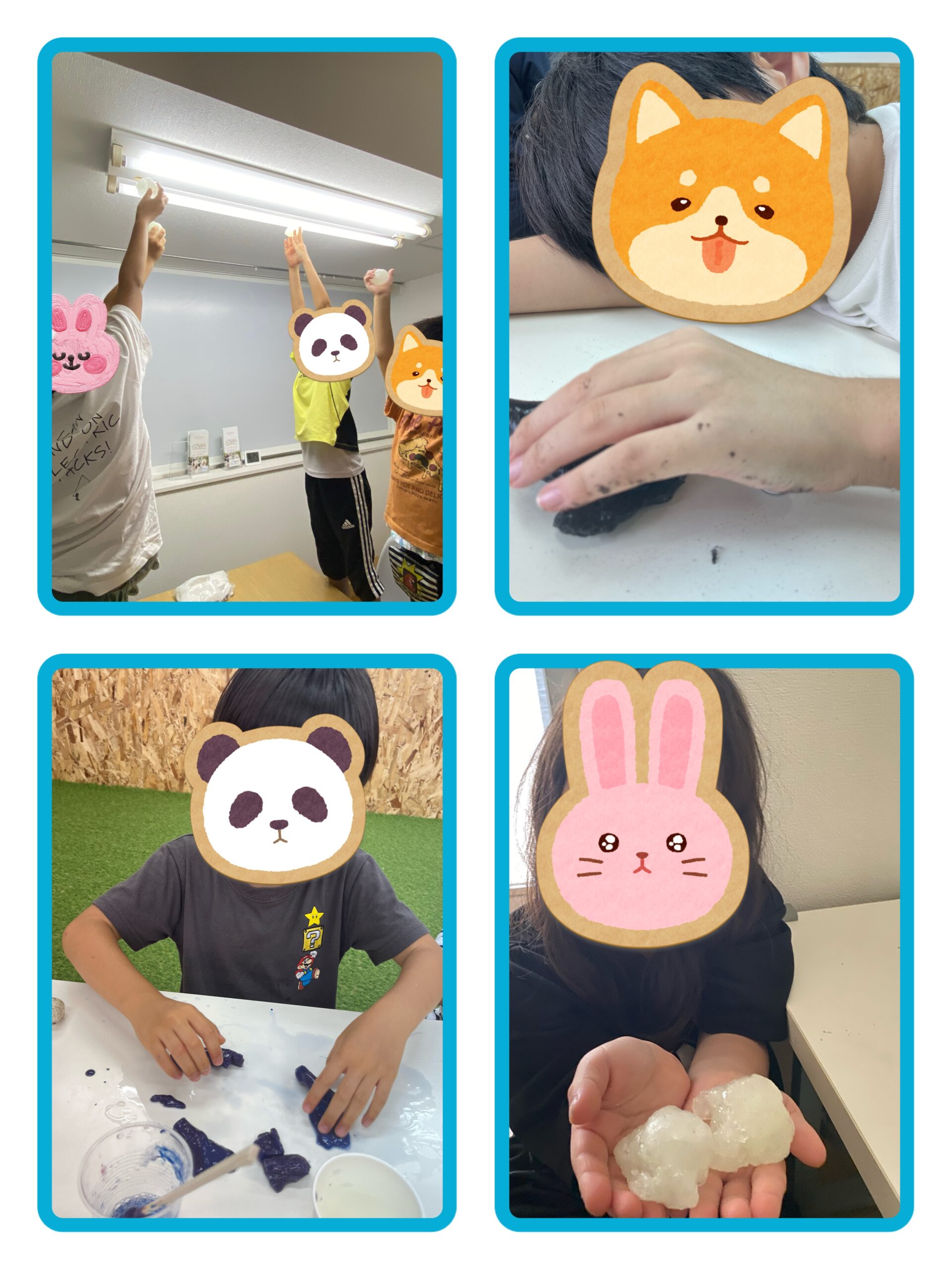 なかにはなかなか自分のスライムが光らず悲しんでいる子もいたのですが、お友だちから「一回電気に近づけると光るよ!」とアドバイスをもらい、無事スライムを光らせていることができました😊