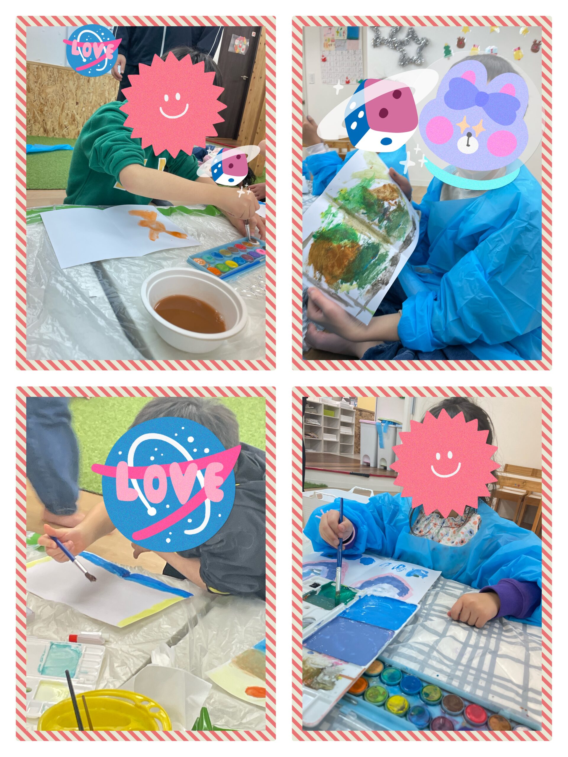 そのほかにも、絵の具の色の混ざり具合などもあわせて楽しんでもらいました✨