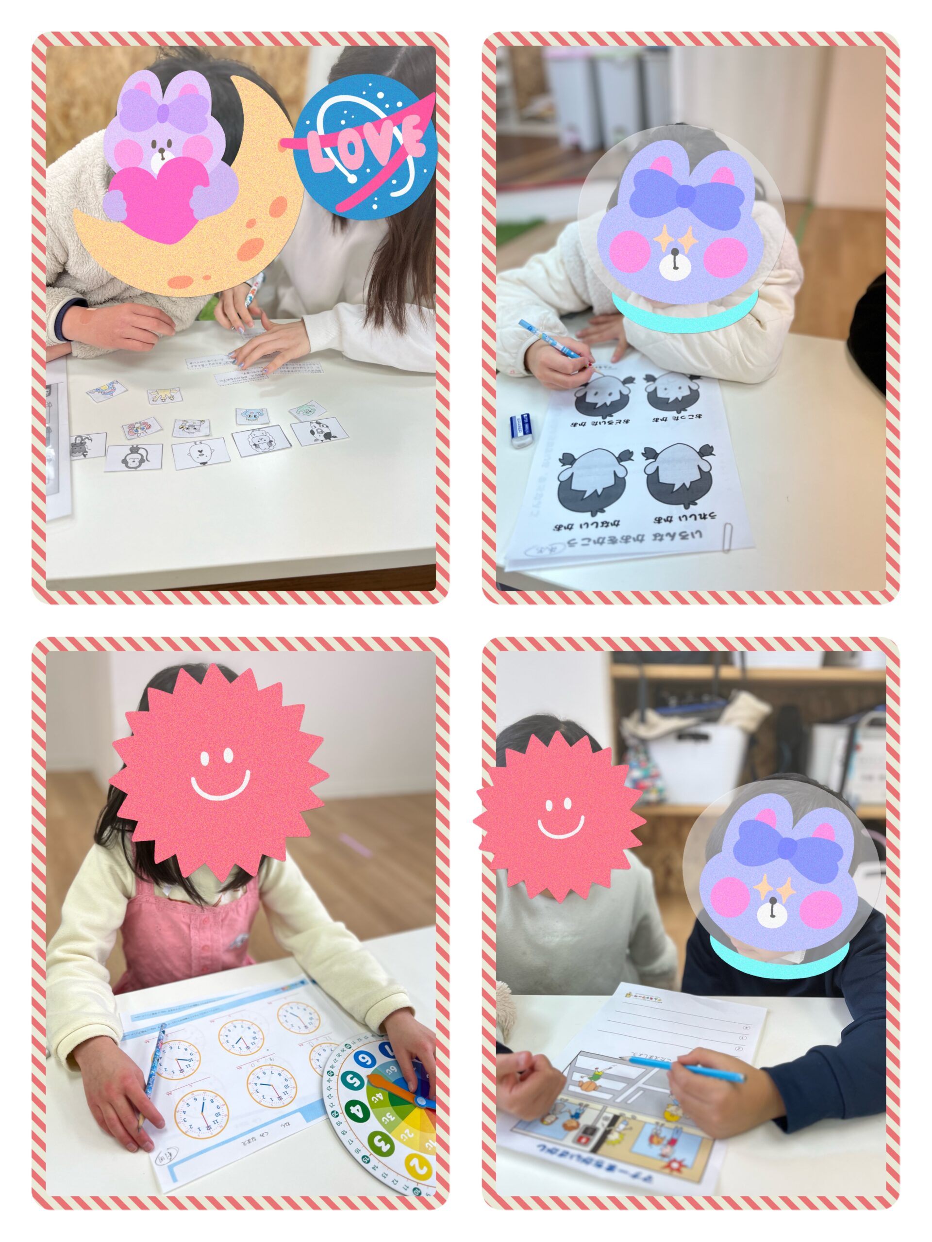 時計の読み取りや交通ルールにちなんだ間違い探しなど、楽しみながら社会のルールや生活スキルを学んでもらいました✨