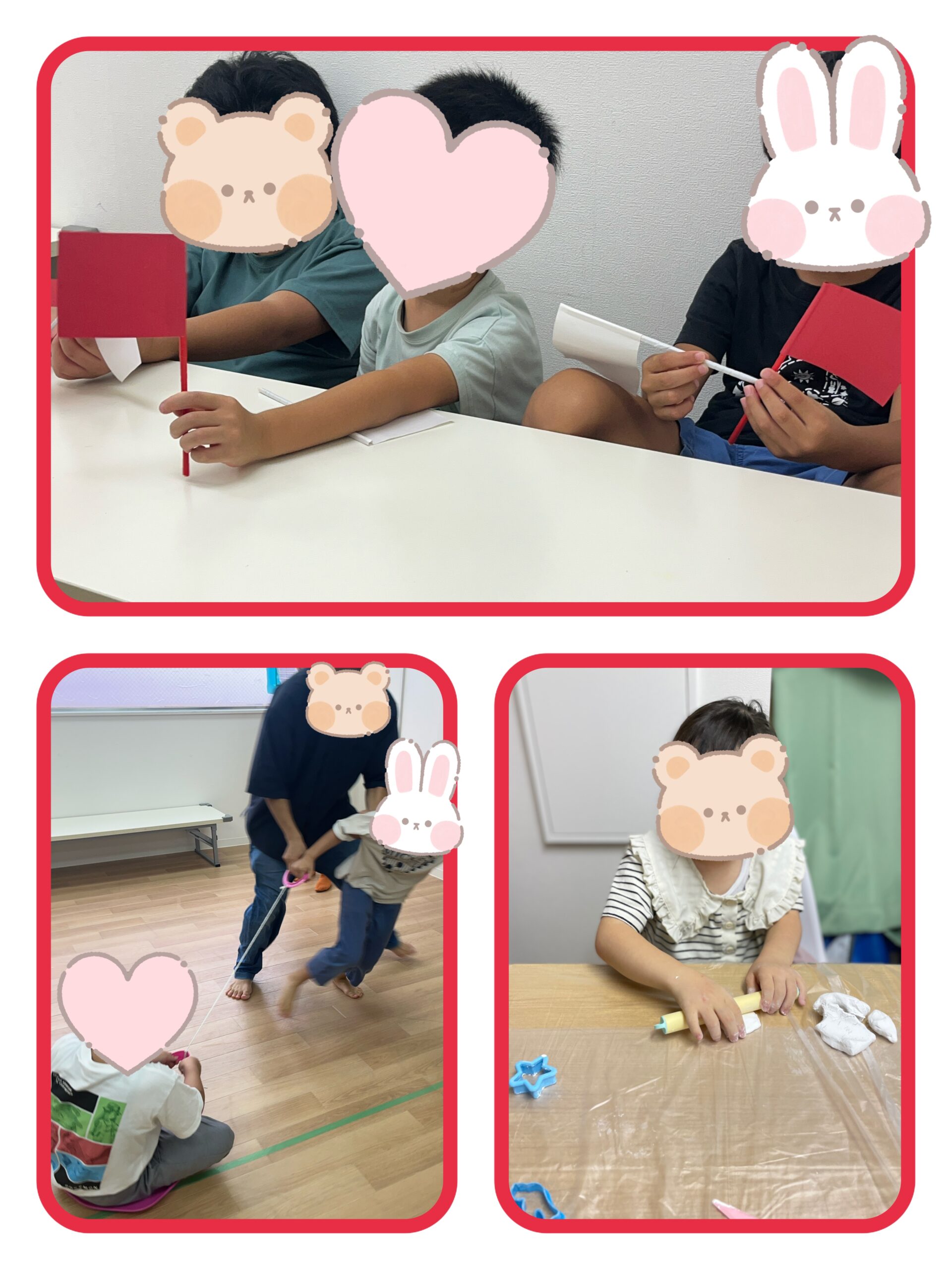 この日は①粘土ああそび②そりあそび③危険予測のチームに分かれて個別療育を行いました。