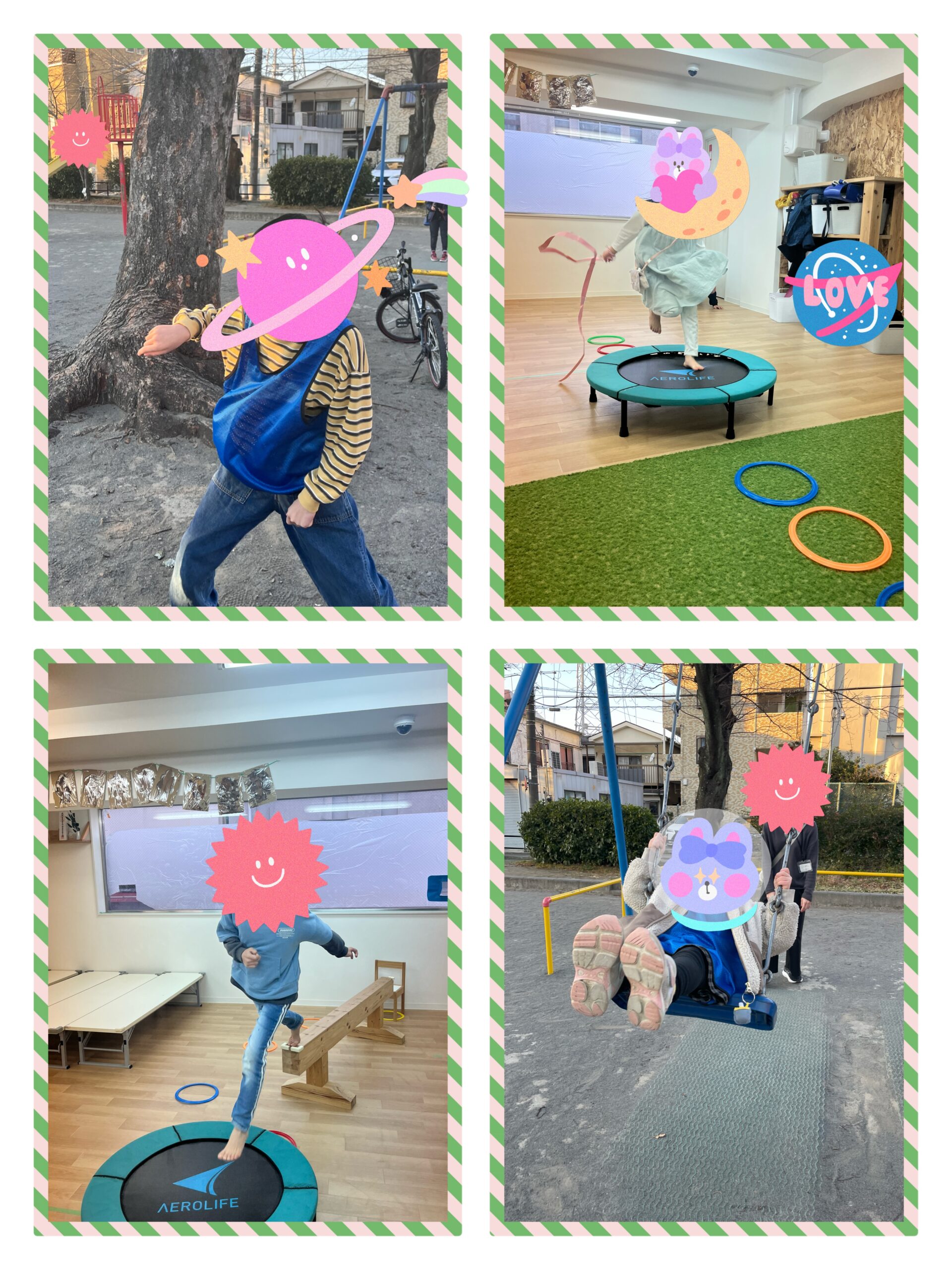 なかには好きなアニメの武器を手作りして、その武器を振りながらトランポリンに乗ったりと、室内あそびにもその子らしさが表れていました😊