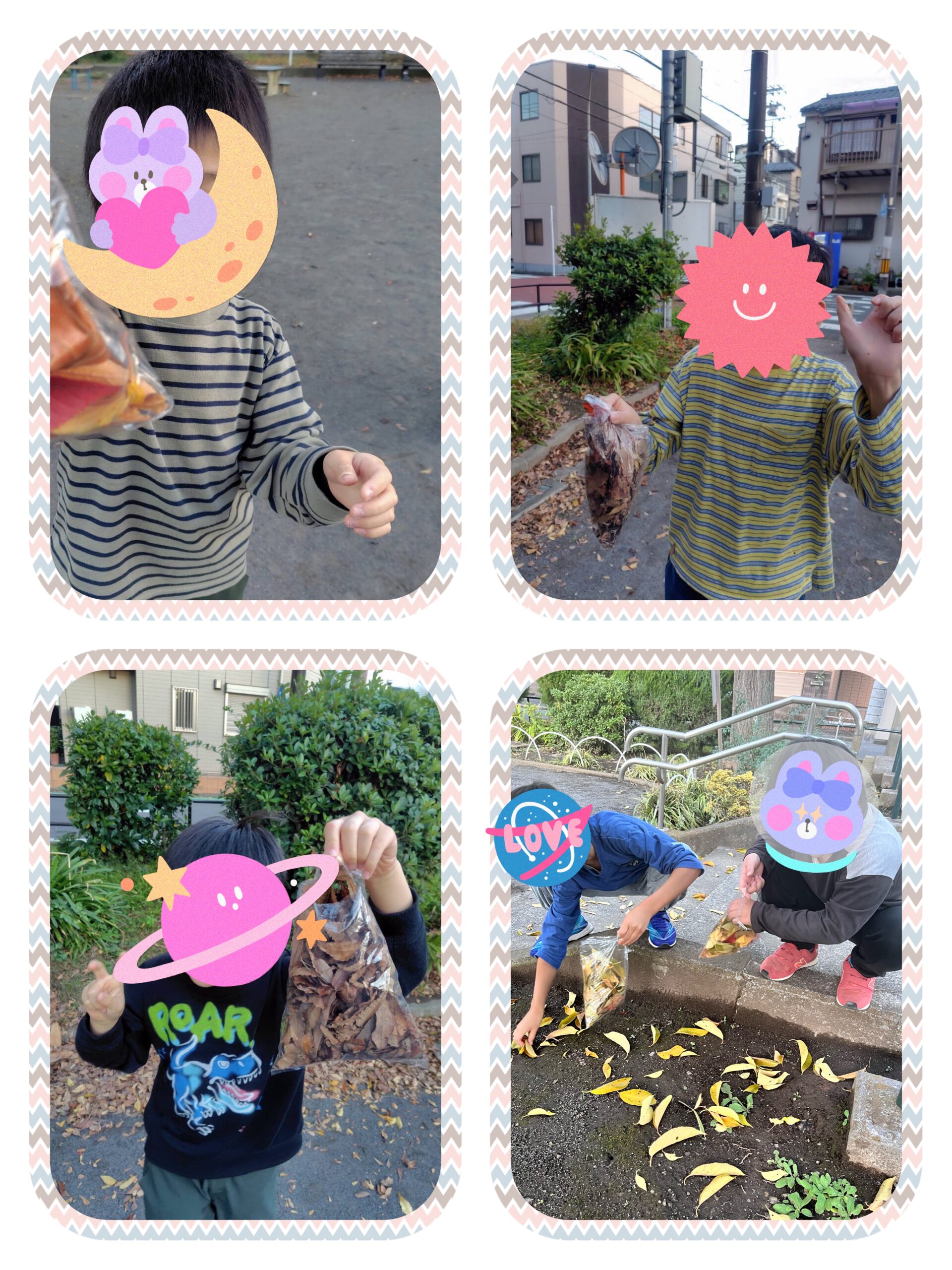 2人1組のペアになってもらい、公園に落ち葉探しに出かけました🎵