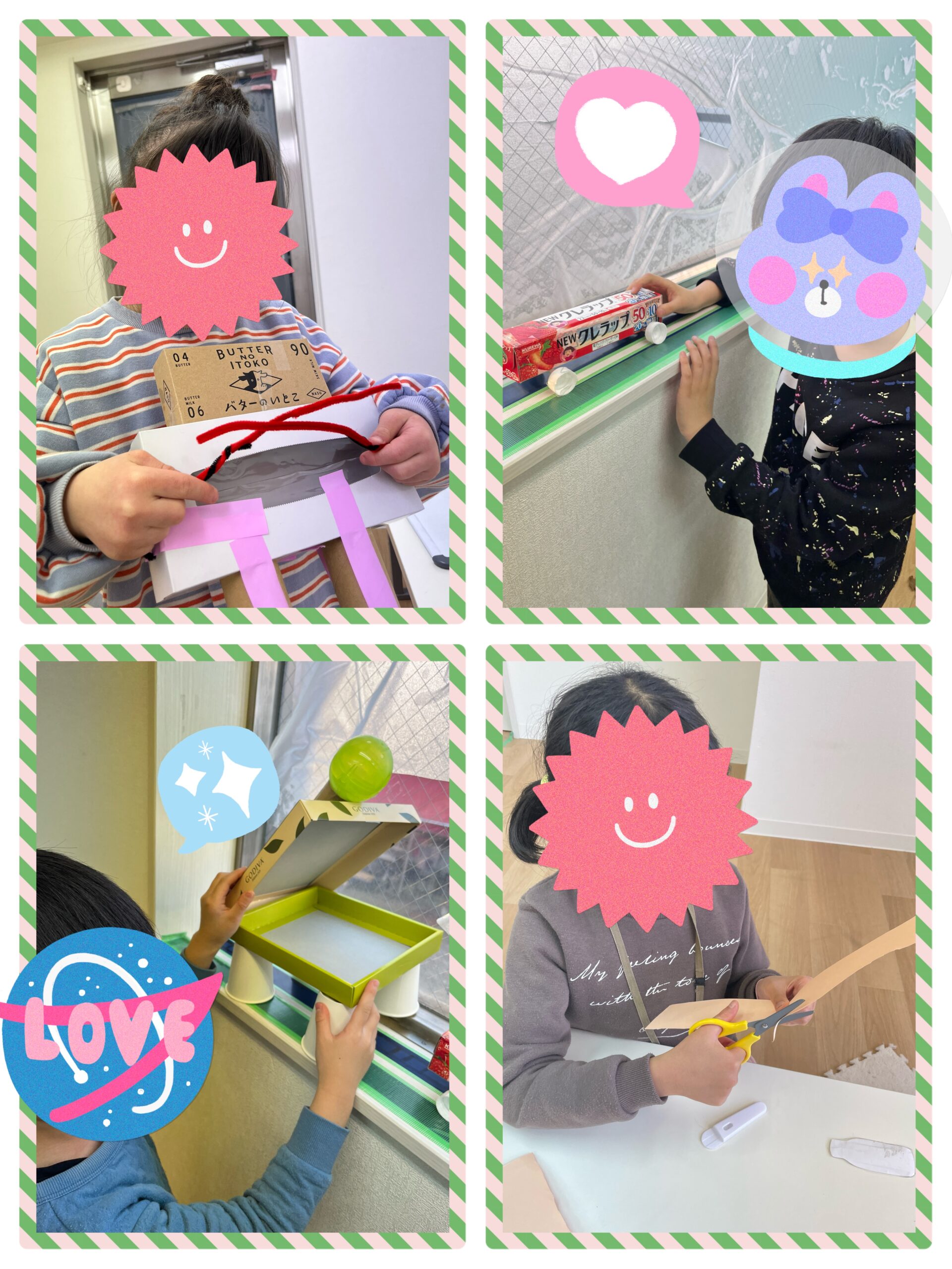この日は空き箱を使った自由工作に取り組んでもらいました✨
