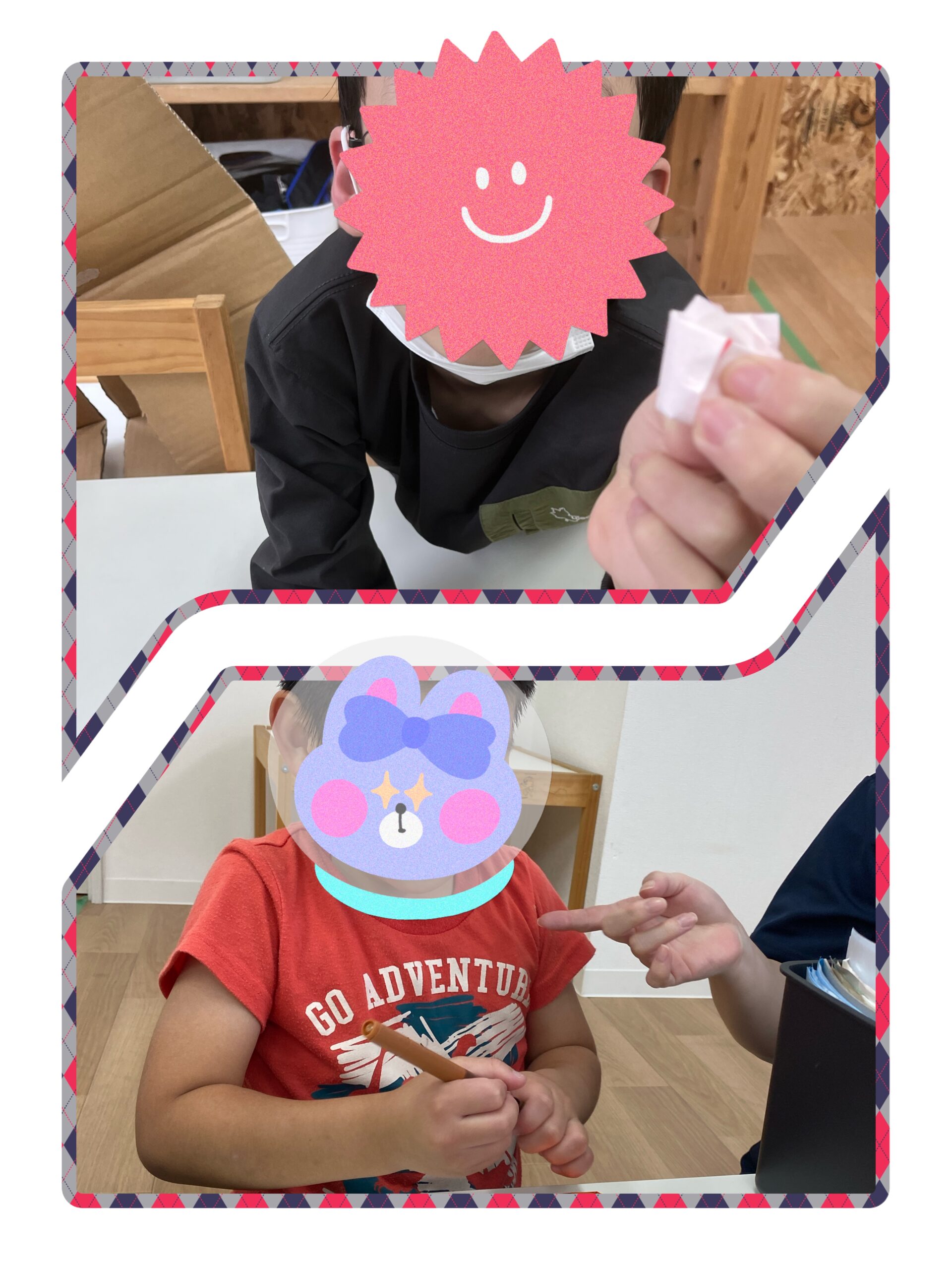 11月らしいものが集まったら、折り紙にそれぞれの思う11月らしいものを書いてもらいます!