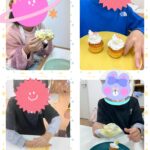 うずまきの形にクリームを絞るのに苦戦していましたが、上手に手指を動かしてかわいいモンブランを作り上げていました👏