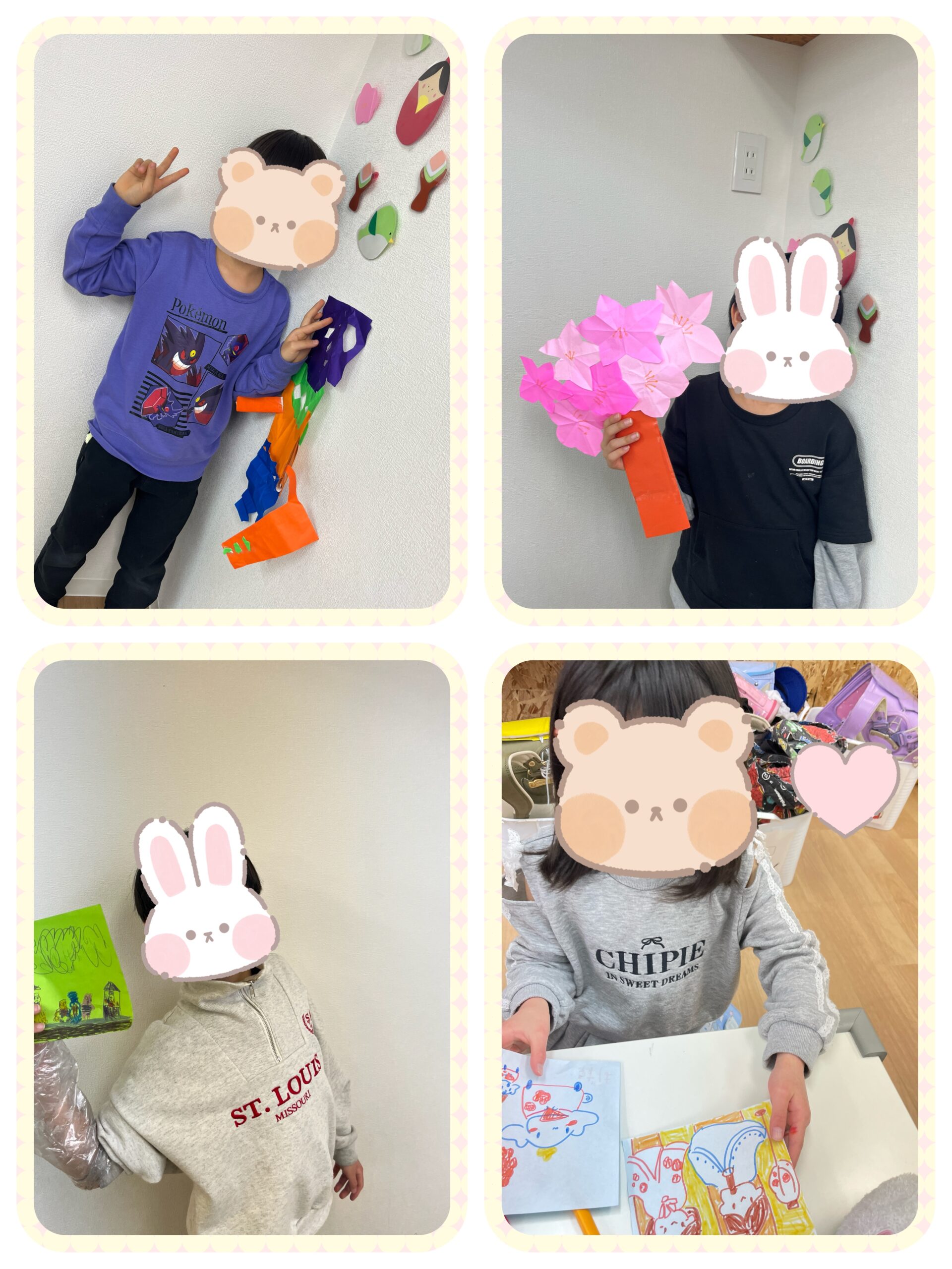 好きなキャラクターのひな人形を描いたり、折り紙で桜の花を折ったりと、みなさん自分らしい形で3月を表現していました。